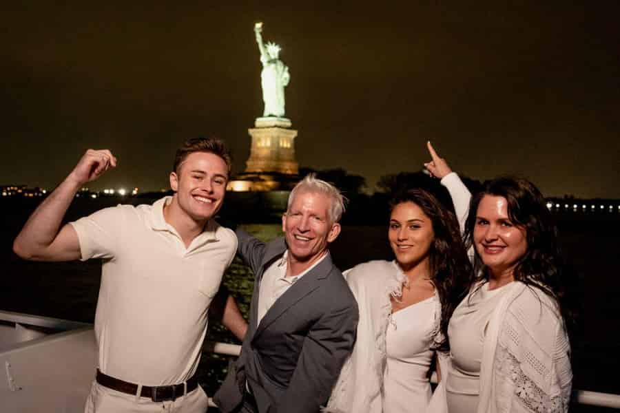 Feiere Silvester auf einer NYC-Kreuzfahrt mit einem Abendessen vom Buffet, unbegrenzten Getränken, Live-DJ und Saxophon, während du an berühmten Sehenswürdigkeiten vorbeikommst und das Feuerwerk der Freiheitsstatue beobachtest, plus Zugang zur After-Party.