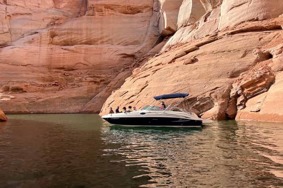 Erkunde den atemberaubenden Glen Canyon Dam bei einer Rundfahrt auf dem Lake Powell in Page. Genieße atemberaubende Ausblicke auf die Wahweap Bay und den zweitgrößten Betonbogendamm der Vereinigten Staaten.
