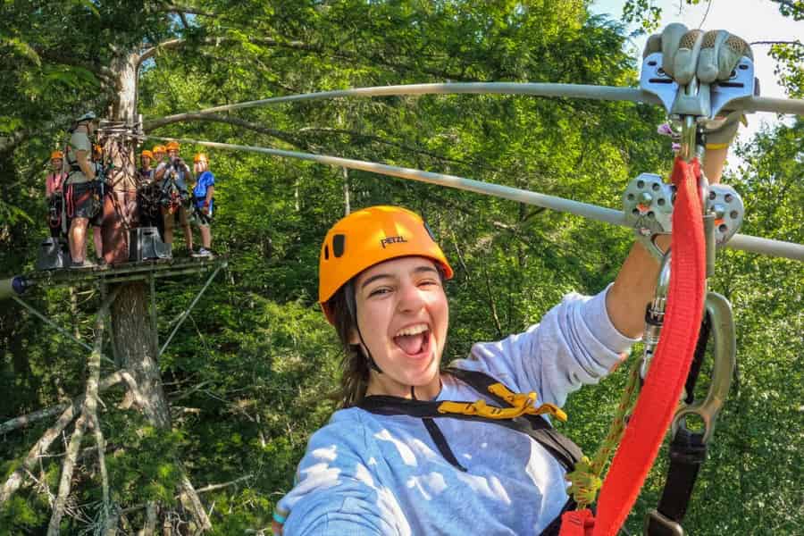Erlebe den Nervenkitzel des TimberTrek Adventure Park in West Virginia. Wähle aus 7 Parcours mit unterschiedlichen Schwierigkeitsgraden und genieße ein selbst geführtes Abenteuer mit ausgebildeten Guides am Boden.